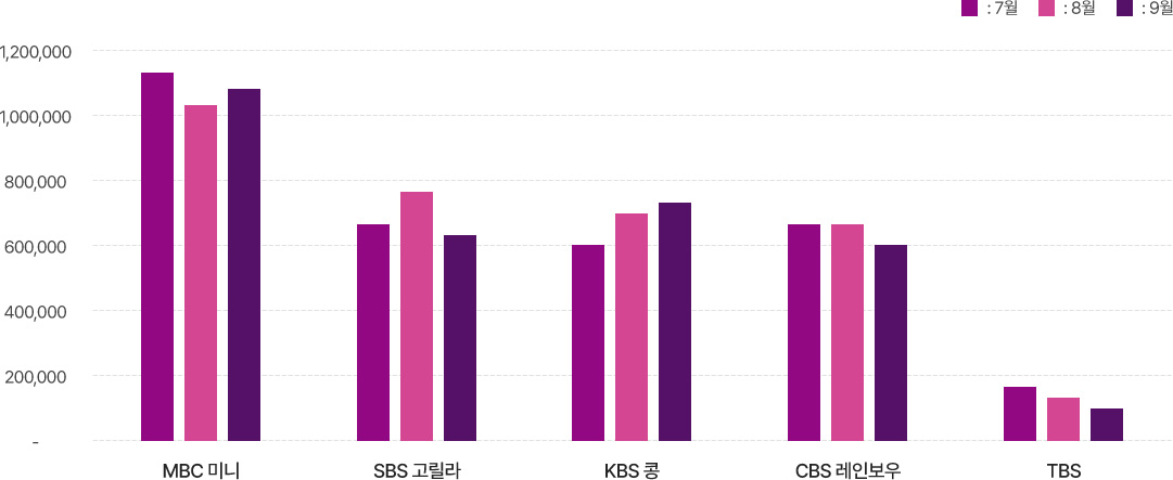 | MBC 미니 | 1,104,576 | 1,022,719 | 1,097,098 |